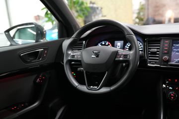 Uitgerust met een rijke optielijst met o.a. achteruitrijcamera, keyless entry/go, 19 inch Exclusive velgen, SEAT Sound, adaptieve cruise, file-assistent, lane-assist, Apple CarPlay / Android Auto, LED koplampen, stoelverwarming, verwarmbare en acoustische voorruit, inparkeersysteem, sfeerverlichting en nog veel meer!